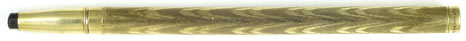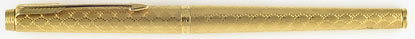 15771: Parker 75 Insignia: fine crosshatch pattern, dished ends, marked "14K G.F. CAP & BARREL U.S.A." (gold filled, not gold plated like later 75s), with metal convertor, section with angle indicator, 14K US-made "F" nib.
