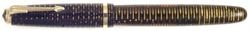 16936: Parker Vacumatic Debutante: small black Shadow Wave, 11.75 cm long, gold filled trim, good imprint with 2nd quarter date code, some barrel transparency but much darkened, aluminum Speedline filler.
