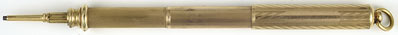 16708: unmarked magic pencil: gold filled fine barleycorn pattern including shaft, 7.5 mm long closed, 12.55 cm extended, uses 1.5 mm lead; an earlier design, unusual form.