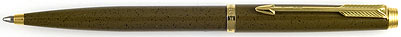 16861: Parker 75 Laque ballpoint: rare speckled olive brown lacquer finish, gold plated trim, made in France, "LE" date code; not a catalogued finish, likely test market.