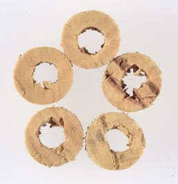 Original cork seals for Onoto plunger-filler packing unit repair, will also fit most Japanese ink-shutoff dropper-fillers. Approximately 13/64 inch (5.2 mm) in diameter, typically used in pairs. Natural cork, soak in mineral oil before installation to soften. Fully usable if prepared correctly, noting that center holes may be off-center, cutting somewhat rough: 5 for $15