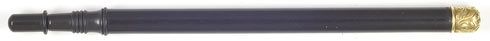 17105: MacKinnon stylographic pen: unusual extra-long eyedropper-filler, early production with no posting peg; smooth black hard rubber, 15.9 cm long, gold filled end cap, good imprint "D. MACKINNON, PAT. MAR. 21 '76." but no 1878 patent imprint, weighted and sprung needle all intact; slight even fading to hard rubber, cap is a replacement of excellent quality; a scarce example of one of the earliest mass-produced fountain pens.