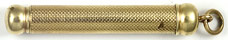 16708: unmarked magic pencil: gold filled fine barleycorn pattern including shaft, 7.5 mm long closed, 12.55 cm extended, uses 1.5 mm lead; an earlier design, unusual form.