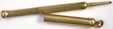 16974: Fairchild magic pencil: gold filled ringtop, 5.1 cm long closed, 10.75 cm extended, uses 1.4 mm lead.