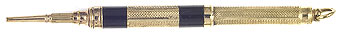 17003: unmarked magic pencil: gold filled ringtop, 4.7 cm long closed, 8.6 cm extended, engine turned barrel, smooth action, uses standard 1.1 mm lead.