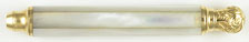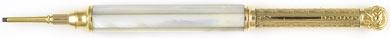 16979: E. S. Johnson magic pencil: gold filled with lustrous pearl overlay, engine turned shaft with Dec. 5, 1871 patent imprint; 12.65 cm extended, unusually long, uses 1.5 mm lead.