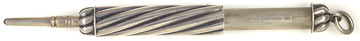 16986: Mabie Todd (?) magic pencil: sterling silver twist pattern ringtop, 5.8 cm long closed, 11.25 cm extended, marked only "STERLING"; propels and retracts lead, uses standard 2 mm lead.