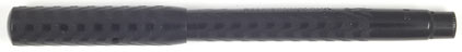 13065: B. B. Stylo stylographic pen: black chased hard rubber with unusual "swing-filler" (the lever pivots sideways), apparently invented by Julius Held (read more here); 11.2 cm long, nickel plated trim. New old stock, but slight heat distortion to cap, fading to hard rubber with shadow from now-missing original price band on cap, nick to surface right below.