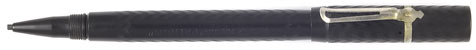 15024: H. C. Hook torpedo pencil: chrome plated brass, 11 cm long, brass propellors, excellent quality and workmanship, uses 1.1 mm lead. The source of these pencils has only recently been discovered to be the H. C. Hook Company of Auburn, Massachusetts. Minor marks, bump to nozzle mouth does not affect function.
