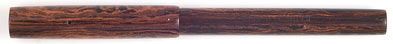 16964: Wirt Safety: black hard rubber clipless screw-cap eyedropper-filler, 10.2 cm long, unusual reciprocating ink shutoff valve actuated by a central post inside the cap (US patent 978,419); Wirt ventless #3 nib with narrow gold underfeed, slightly toothy but very flexible; Wirt Safeties are uncommon, and most are found in the vest-pocket size. New old stock with price band on cap, moderate fading to hard rubber, never filled.