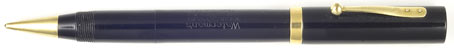 17206: Waterman combination: rare uncatalogued model, black lever-filler, 14.6 cm long, gold filled trim, uses 1.1 mm lead; based upon the 52 but in celluloid, not hard rubber. Lever box has some bend marks but is fully intact, condition otherwise excellent.