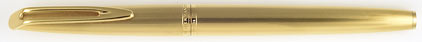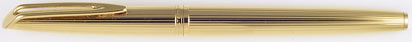 17224: Waterman C/F: gold plated cap and barrel, fine parallel lines pattern, 18K inset nib; made in France, uses cartridges or included aftermarket converter.